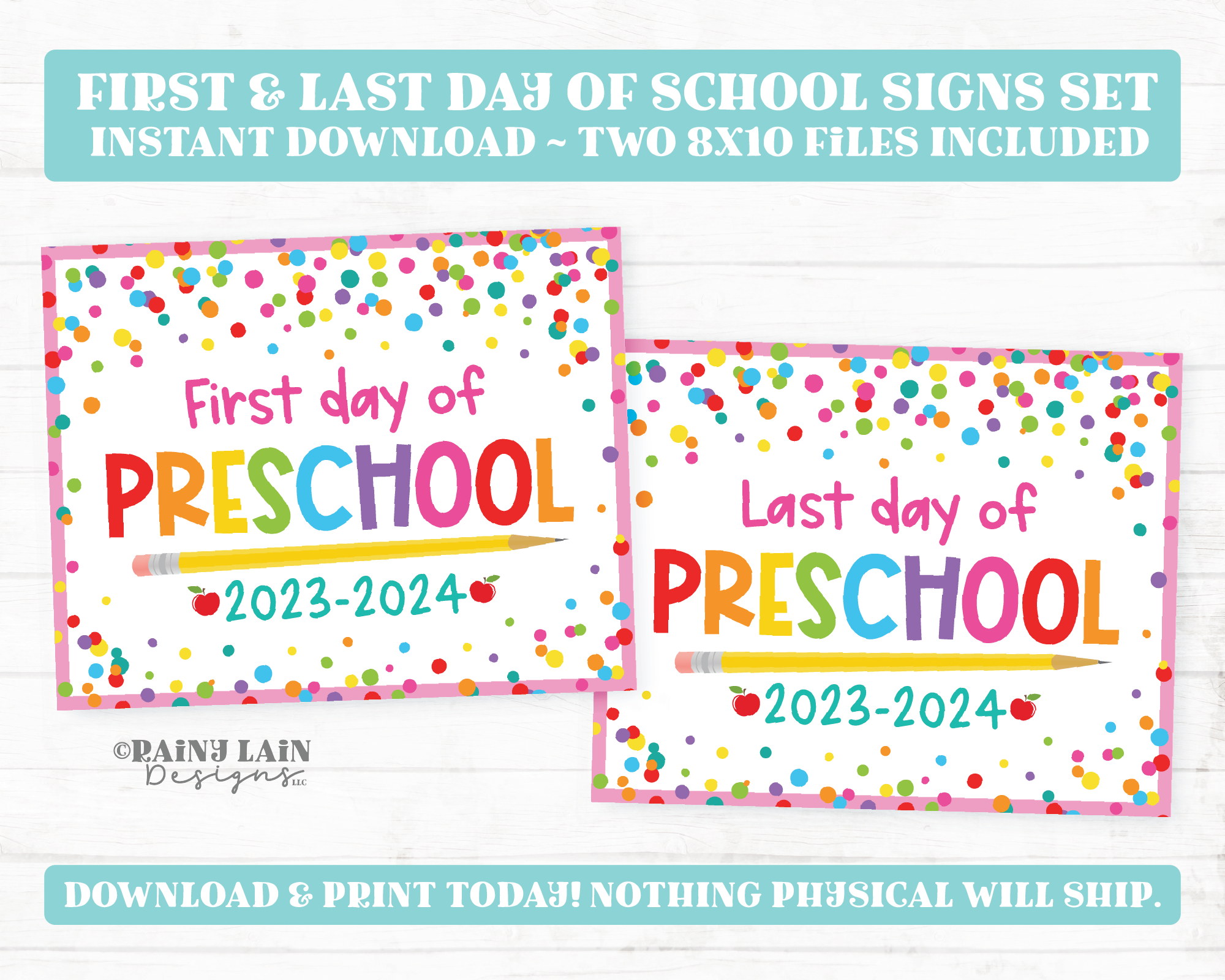First and Last Day of Preschool Sign Set 1st Day of Preschool